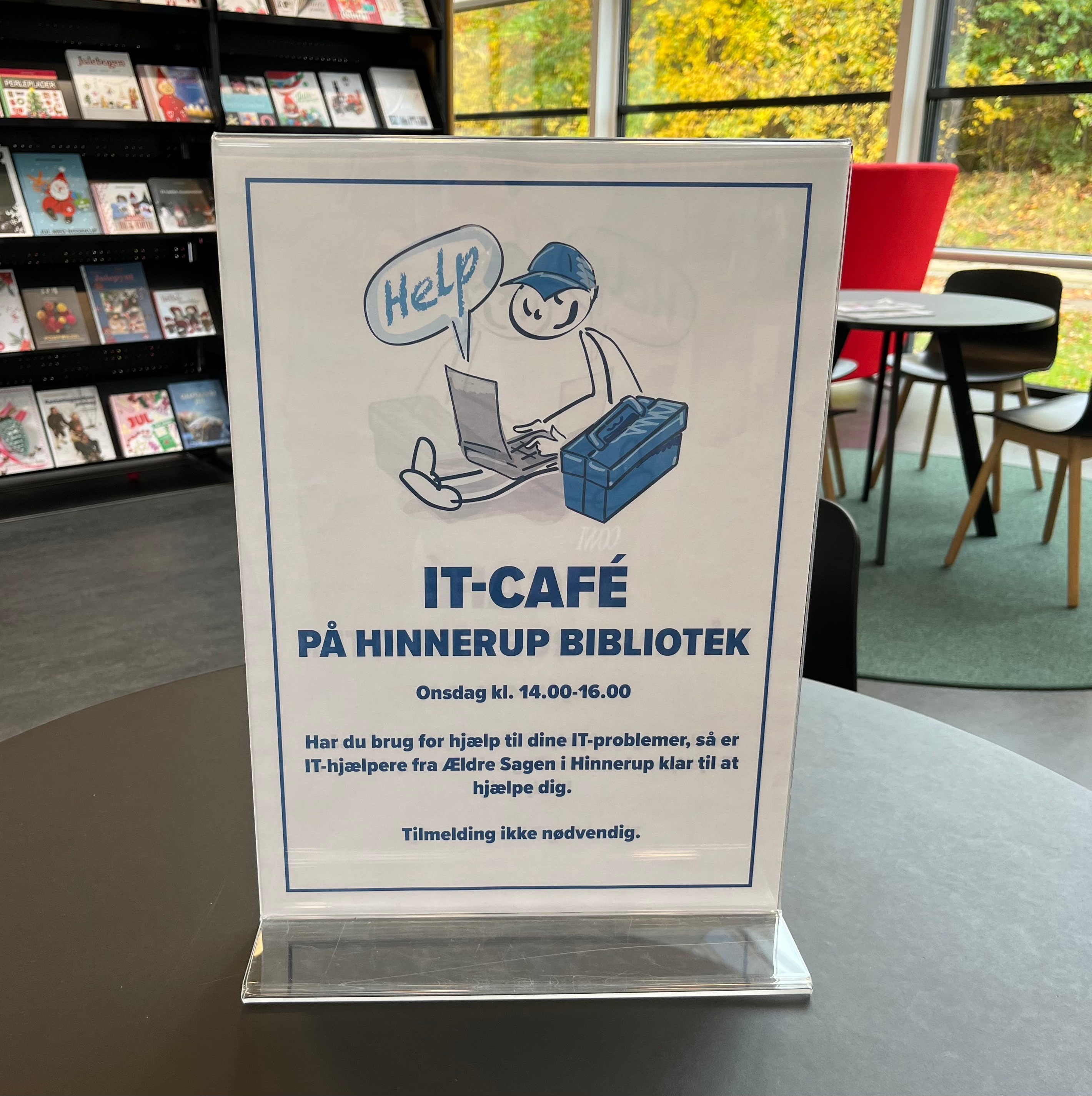 Ældre Sagens fem It-hjælpere holder It-cafe på Hinnerup Bibliotek en gang om ugen hver onsdag kl. 14-16