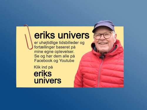 Eriks Univers Søndag 23. november kl. 13 Sted: Nordborghus Erik fortæller historier og anekdoter fra egne oplevelser gennem livet. Foredrag og frokost fra Kjukken samt en genstand. Tilmelding Online Pris: 200 kr.