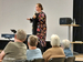 Efter frokosten skulle vi synge. Kirkesanger i Hinnerup Jeanette Bonde Mikkelsen stod i spidsen for fællessang og en snak om, hvad sangen gør for os.
