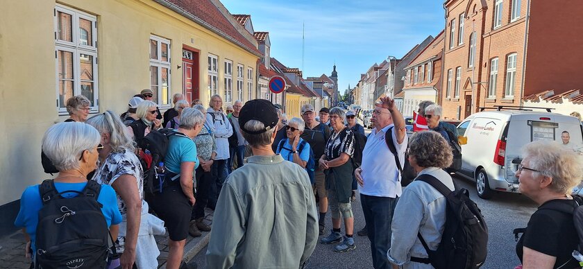 I 1682 fik byen religionsfrihed, noget specielt i Danmark, hvor alle skulle have samme religion som kongen. Religionsfriheden betød meget for byens udvikling. Især tre grupper kom til at præge udviklingen: katolikker, de reformerte og jøderne. Med Grundloven 5. juni 1849 fik hele kongeriget religionsfrihed. Sammy kunne fortælle og fortælle om Fredericia, og vi andre kunne efterfølgende konstatere – det havde været en anderledes vandredag, som afsluttedes med kaffe og kage på en af byens cafeer inden hjemkørsel.