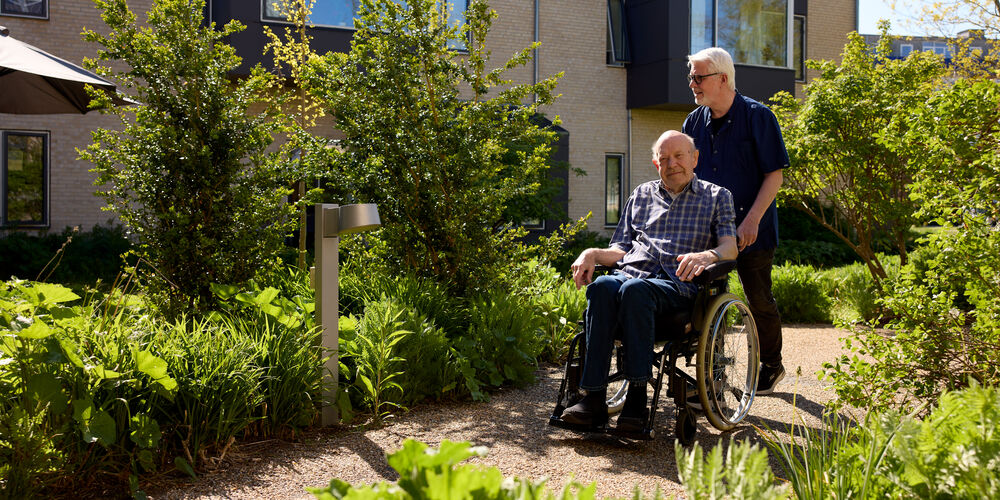 Frivillige går ture og skubber plejehjemsbeboere i kørestol