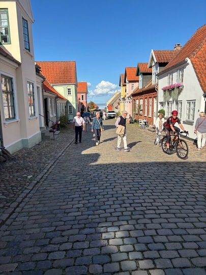 Kl. 11.15 ankommer vi til Ærøskøbing hvor vi modtog vores lokale guide Jørgen som i en årrække har været borgmester på Ærø.