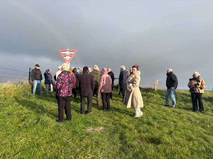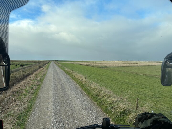 Turen forsatte i bus ud i Tøndermarsken ad grusvejen ud til Vadehavet hvor vi havde et kik til Sylt. Vi fik også historien omkring vildsvinehegnet som har koster samfundet rigtig mange penge. Herfra gik turen til Rudbøl hvor vejen igennem byen delte landene mellem tysk på ene side og dansk på den anden side af vejen. Der er 2 græsekroer i byen, 1 tysk og 1 dansk græsekro.