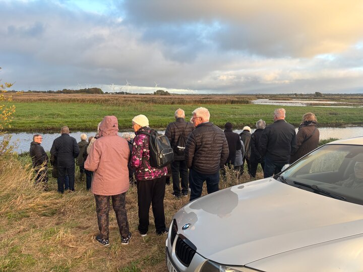 Så skulle der ses Sort Sol, så vi kørte videre på den tyske side til Süder Lügum hvor vi desværre ikke så stærene i de mest fascinerende mønstre på himlen. Tilbage til Lægan pumpestation hvor vi sagde pænt tak og farvel til en meget indlevende guide Jan.