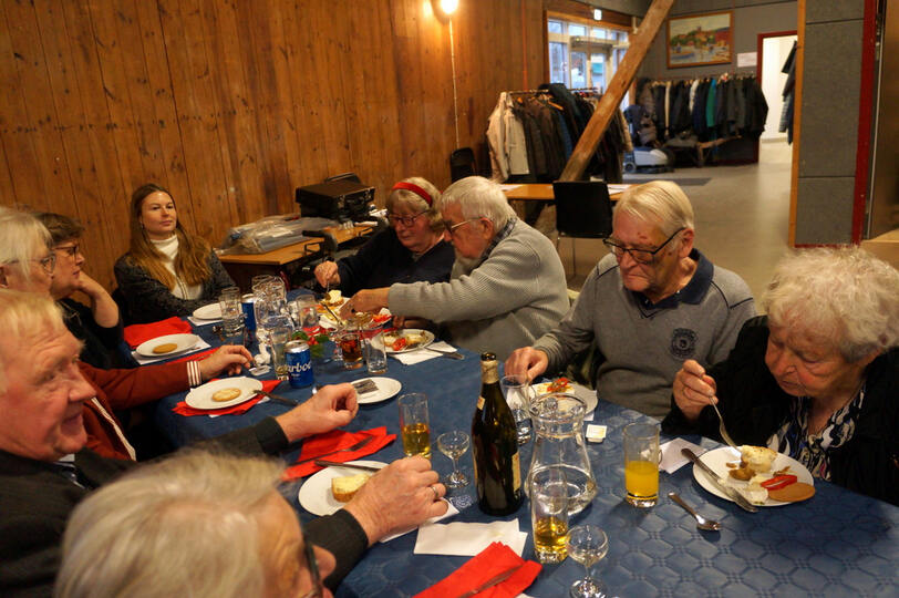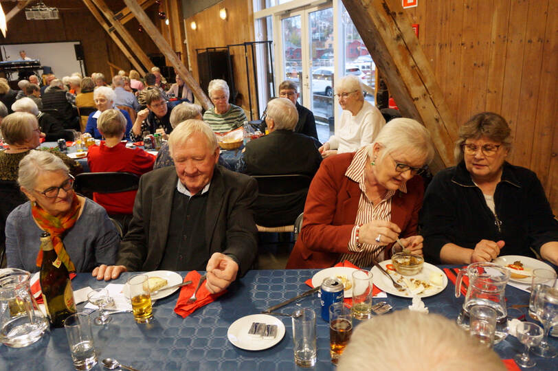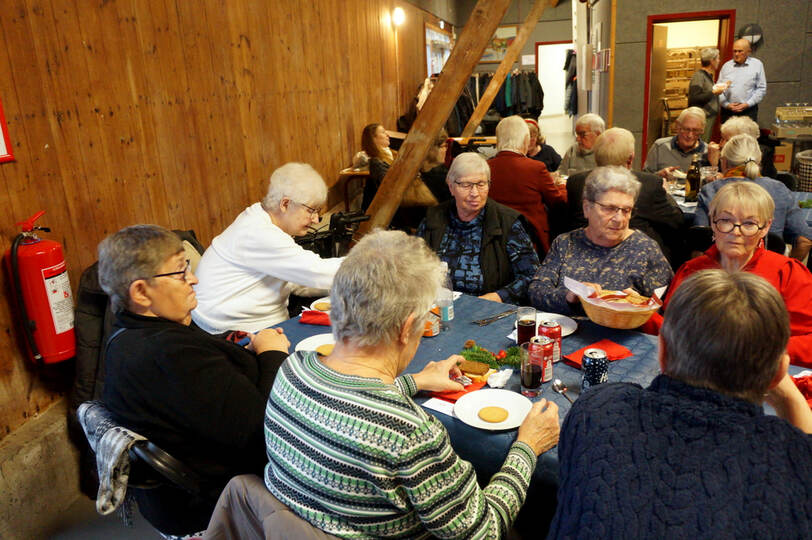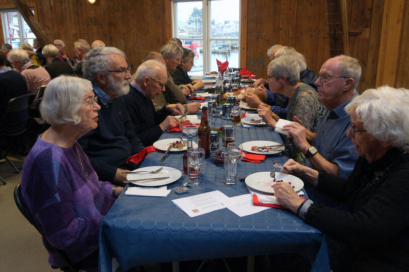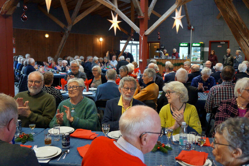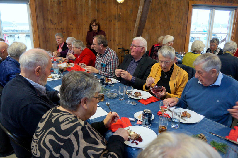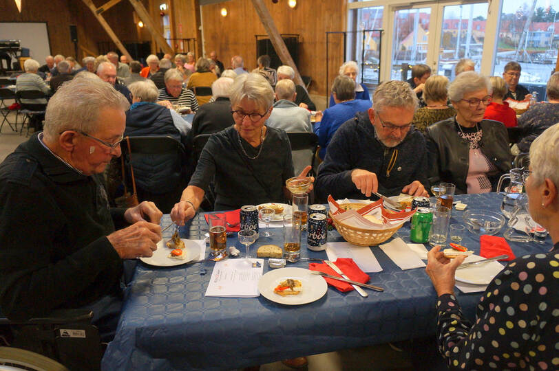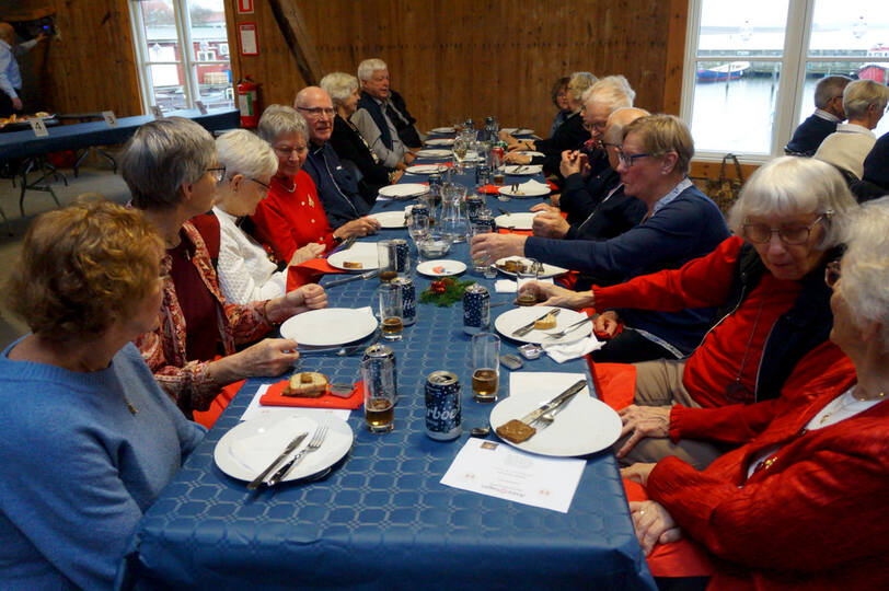 Igen i år kunne vi afholde vores julefrokost i Det Røde Pakhus, med alle pladser besat. Kun fordi vi har en del frivillige der hjælper til med at finde borde og stole frem inden vi kan dække bord er det muligt. En hyggelig eftermiddag med dejlig mad fremstillet af Connie + hjælpere og musik leveret af Knud fra Agersø fremtryllede en rigtig god stemning.