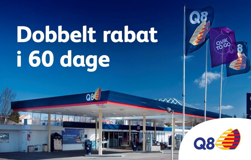 Bestil et Q8 Benzinkort og få dobbelt rabat, 60 øre pr. liter benzin og diesel i 60 dage. Efter endt kampagneperiode er rabatten 30 øre pr. liter benzin og diesel.