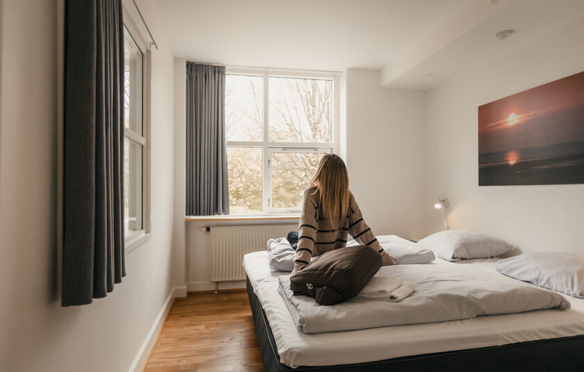 - Tillæg ved 1 person i boligen kr. 180 pr. nat