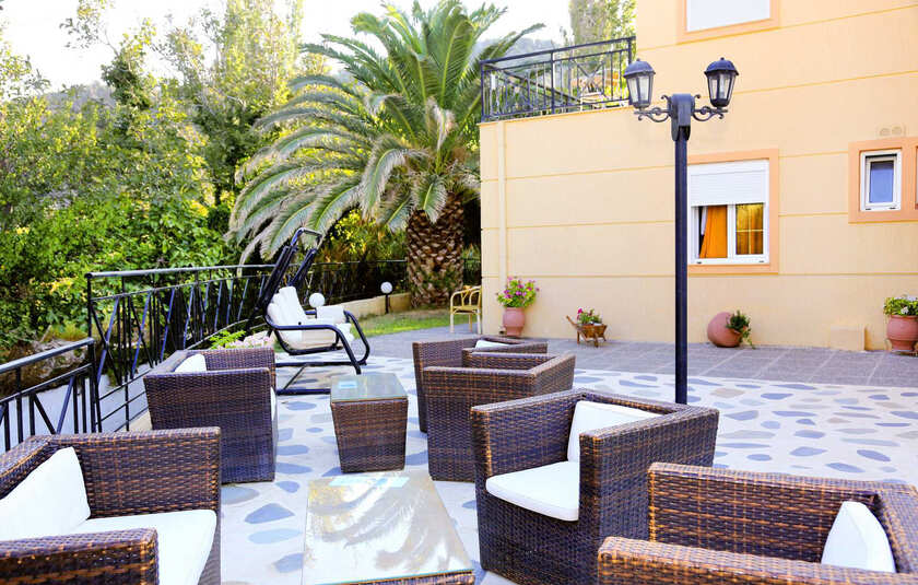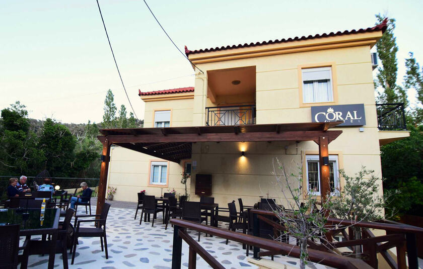 Omgivelserne er frodige og du er tæt på både strand og centrum. Strandbyen Agios Isidoros ligger kun 400 m fra hotellet, og centrum af Plomari ligger ca. 3 km fra hotellet.