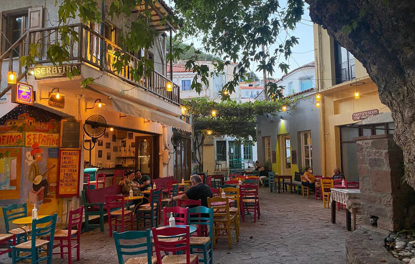 Rejs med til charmerende Plomari på det sydlige Lesvos! På det lille torv Platanos i centrum af Plomari kan du nyde lange tavernaaftener og hyggelige ouzoriaer. Sæt dig ned, skål med de lokale og oplev det græske hverdagsliv! Byen Plomari er kendt for fremstilling af brændevinen Ouzo.