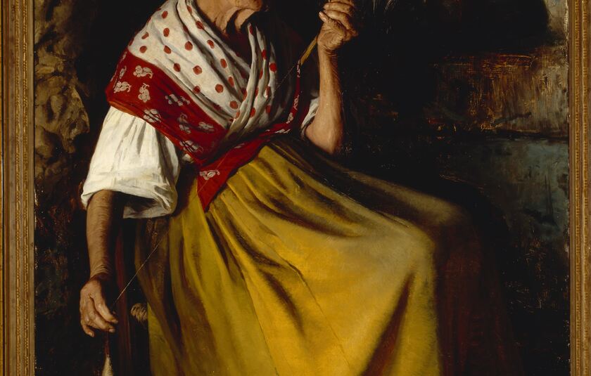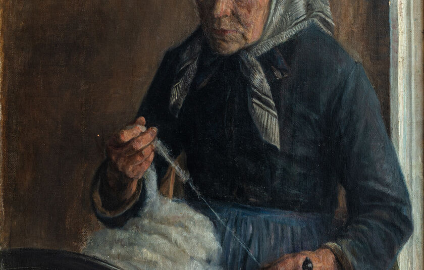 På udstillingen kan man opleve ældre malerier af C.W. Eckersberg, Wilhelm Bendz, Niels Larsen Stevns, P.S. Krøyer samt Anna og Michael Ancher, der skildrer håndarbejdende kvinder fra forskellige samfundslag. Malerierne illustrerer, hvordan håndarbejde var en fast del af hverdagen for det 19. århundredes almuefamilier, ligesom det for flere af disse også blev en vigtig indtægtskilde i form af f.eks. den midtjyske bindeindustri og hedebosyningerne sydvest for København.